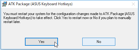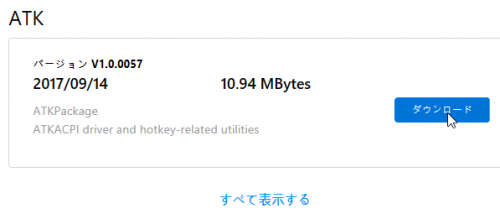 さっそく、ASUSの製品サイトのサポートページから、ATKPackageをダウンロードしてインストールしたところ、無事、ホットキーでタッチパッドの有効・無効を切り替えることができるようになりました。