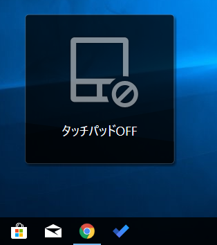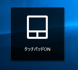 もう一度ホットキーを押すと、「タッチパッドON」というアイコンが表示されて、タッチパッドが有効化されます。