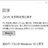 唯一戻らないのは、前回の記事にも書きましたが、Windows 10のバージョンで、初期化を行なっても、初期化直前まで適用されていたバージョンが新規インストールされます。