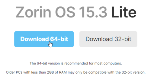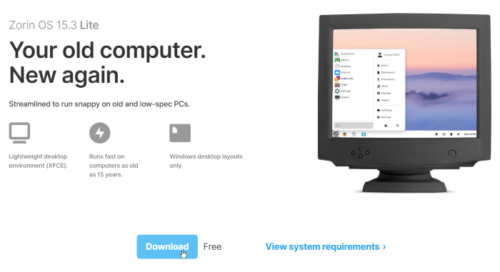 まずは、Zorin OS公式サイトの「DOWNLOAD」ページから、「Download」ボタンをクリックして、Zorin OS Lite(無料)のISOイメージファイルをダウンロード。