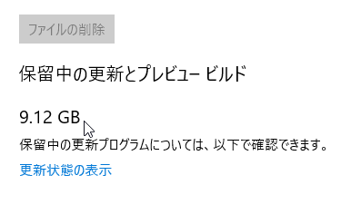 再度Windows Updateを行うと、失敗を繰り返すごとに、保留中の更新ファイルの容量がどんどん増えていって、8GBとか、9GBにもなり、32GBしかないストレージの残容量を圧迫していきます。