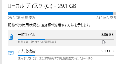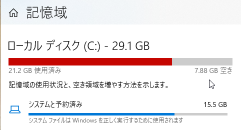これで今まで通り、ストレージ容量32GBのPCでも、Windows 10を快適に使い続けることができそうです。