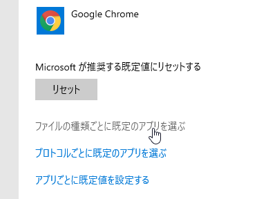 「既定のアプリ」画面が出てくるので、一番下のほうにある「ファイルの種類ごとに既定のアプリを選ぶ」をクリック。