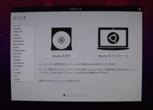出来上がったUbuntu LinuxのインストールDVDも無事、起動しました。