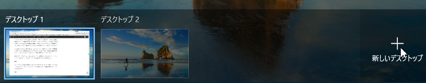 具体的には、「タスクビュー」ボタンをクリックし、画面右下の「新しいデスクトップ」という「+」ボタンをクリックすれば、いくらでも仮想デスクトップを作成できます。