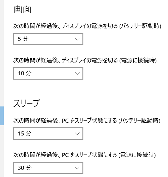 ※ 上記画像は「設定」→「システム」→「電源とスリープ」です。