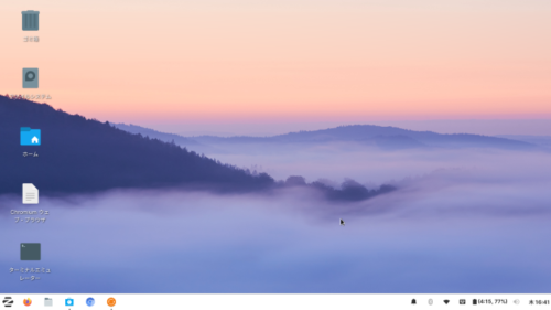 まず、USBブートお試し版のデスクトップの壁紙は、下の画像のような雲海広がる山並みの絶景なのですが。