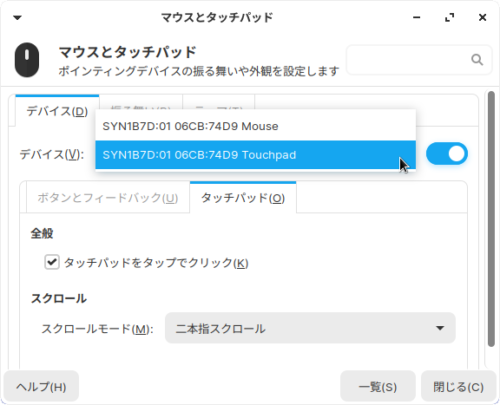 また、これはUSBブート版でもそうなのですが、ノートPCのタッチパッドのタップが、デフォルトで無効になっています。